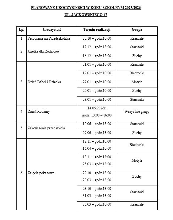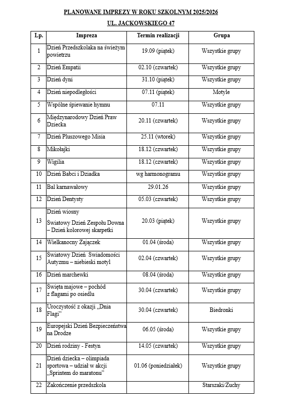 Plan Uroczystości i Imprez ul. Jackowskiego 2025/2026