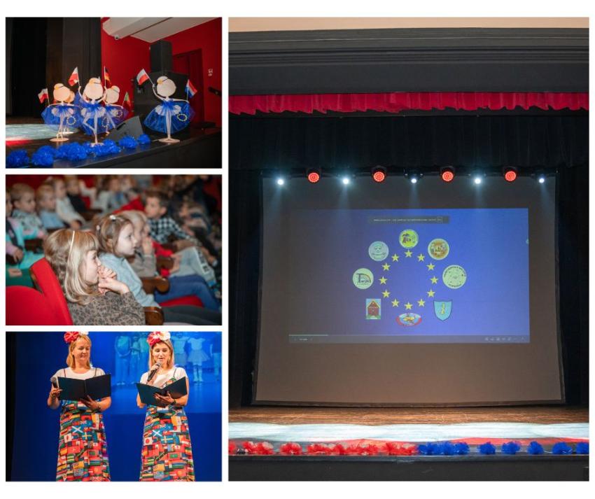 Podczas wspólnego wykonania hymnu Unii Europejskiej dzieciom akompaniował nauczyciel ze Szkoły Podstawowej nr 2 , Pan Fabian Chmielewski z którą na co dzień współpracujemy.